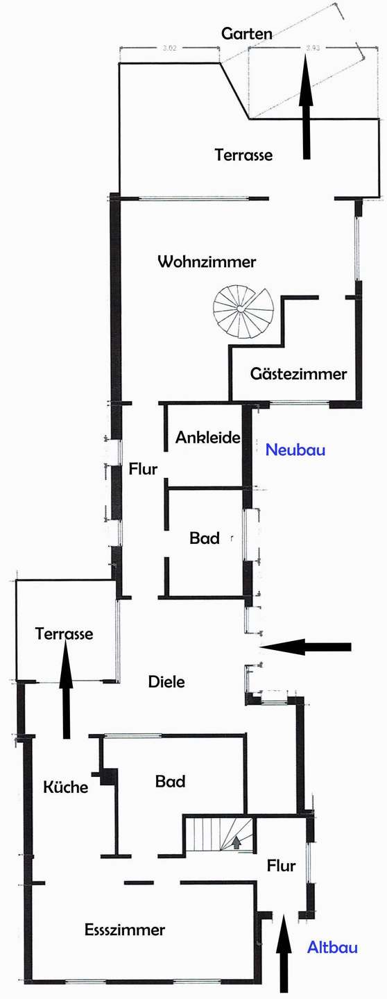 Massivbau bestehend aus alter DHH und neuem Anbau