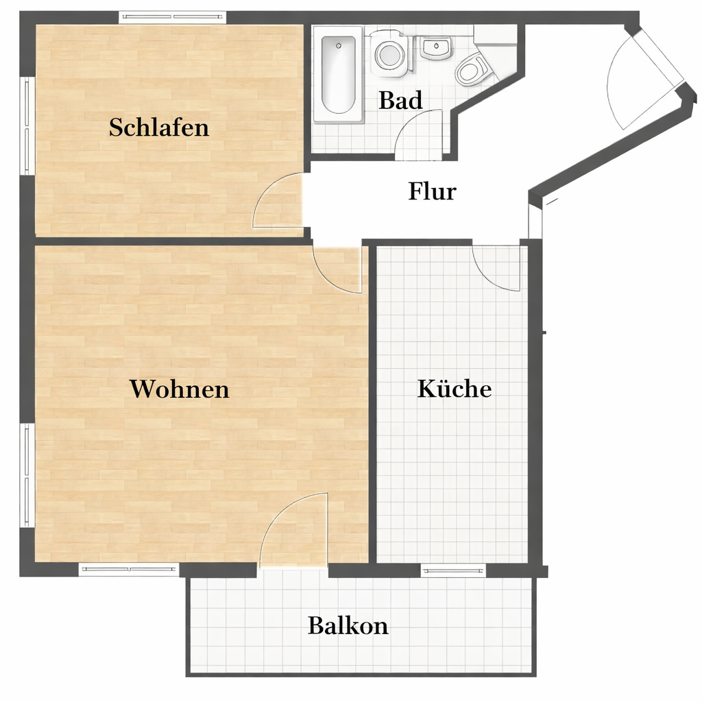 2 große Zimmer, Küche, Bad, Balkon